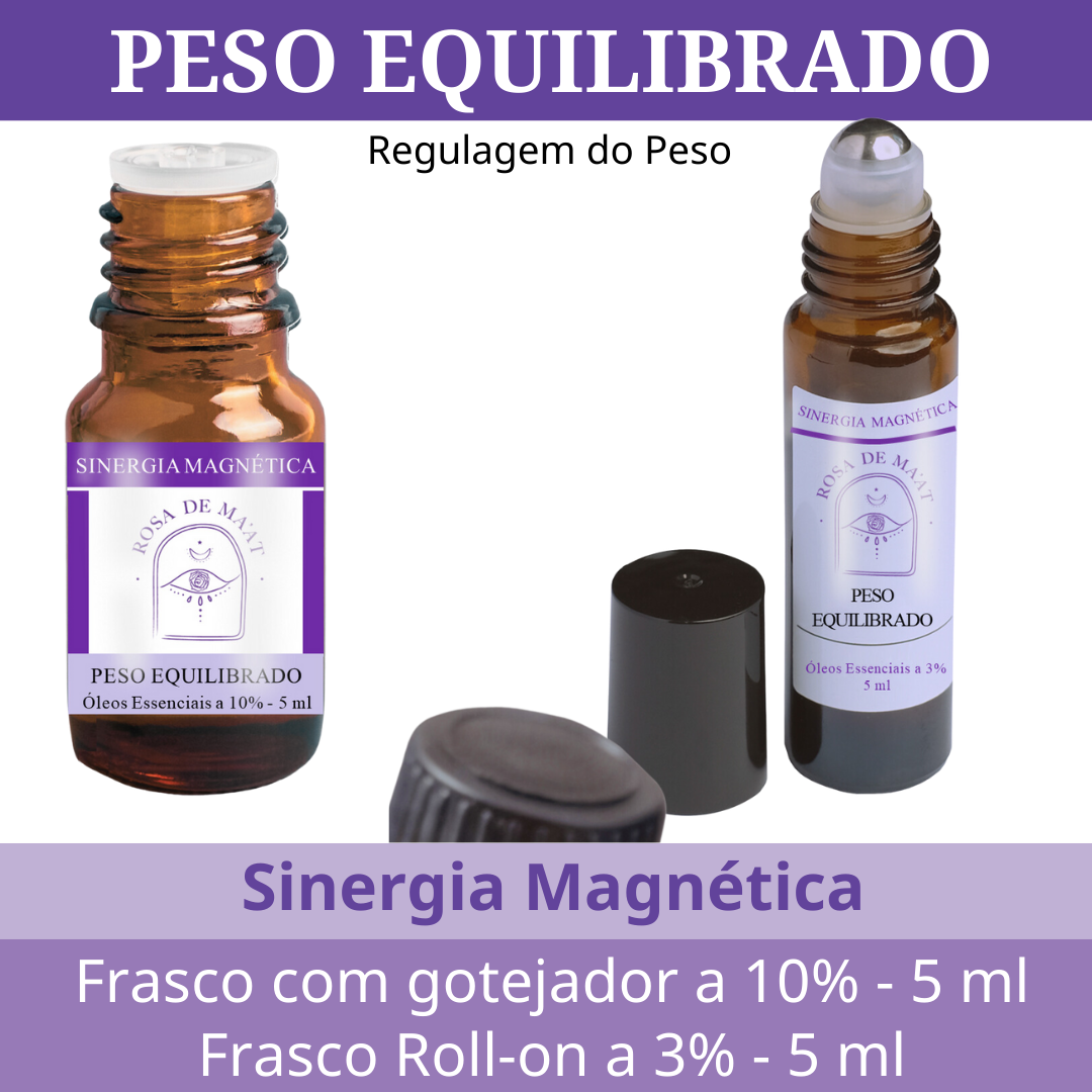A sinergia magnética Peso Equilibrado atua regulando o peso para o ideal a partir de tratar a distorção na dimensionalidade/peso que a pessoa coloca/sente nas coisas, situações e pessoas. Portanto, essa sinergia ajuda a trazer à consciência, à mente e aos sentimentos dimensões e ponderações adequadas à acontecimentos, situações, pessoas, por meio da conscientização do real “peso” e proporções que as coisas têm. Essa sinergia ajuda a pessoa a “tirar o peso da consciência” e “tirar o peso das costas”. É uma sinergia auxiliar no tratamento da ansiedade, de medos (principalmente de pressentimentos) e ainda, favorece acessar e seguir a intuição. Esses benefícios são trazidos pelo aroma da camomila contida nessa sinergia magnética produzida artesanalmente com matéria prima de primeira qualidade, seguindo procedimentos ritualísticos utilizando aromas, cristais, flores, geometria, música e comandos holográficos.